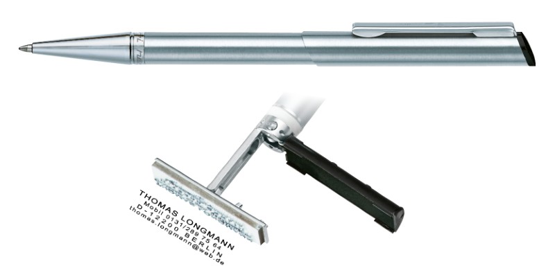 Propisovací tužka HERI Diagonal s vestavěným razítkem až pro 3 řádky textu.